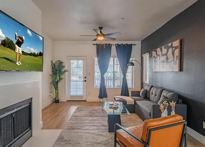 L'appartement Kingbed Golf Pickleball Pool Hot Tub Parking Scottsdale spacieux est situé à moins de 3 km de Thunderbird Square Shopping Center et à moins de 25 minutes à pied de Main Street Arts District. Les clients actifs du domicile de 139 m² pourront profiter du confort d'un club de golf.